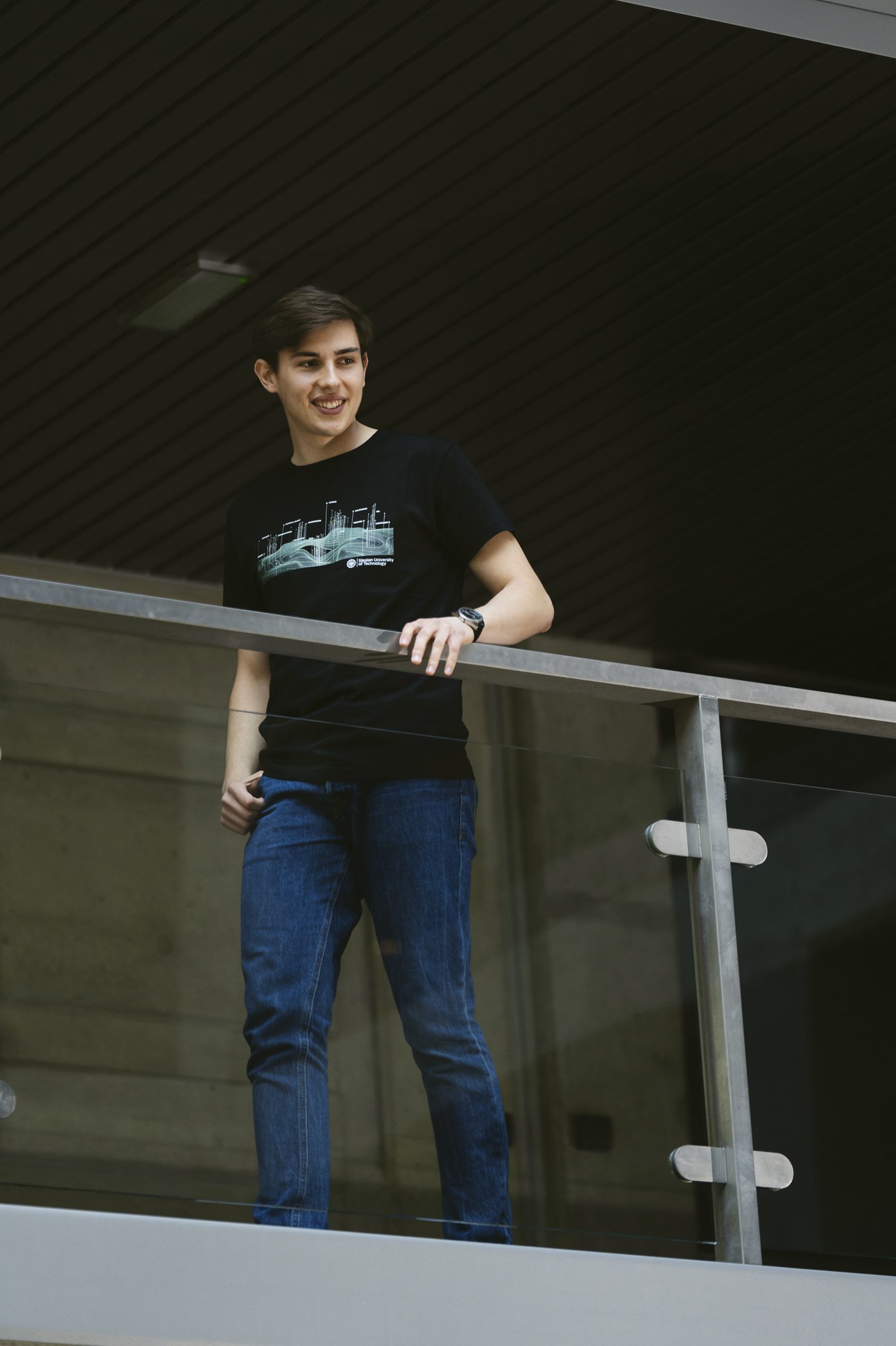 Bawełniana koszulka z krótkim rękawem, w nowoczesnej linii, z grafiką i logo PŚ.