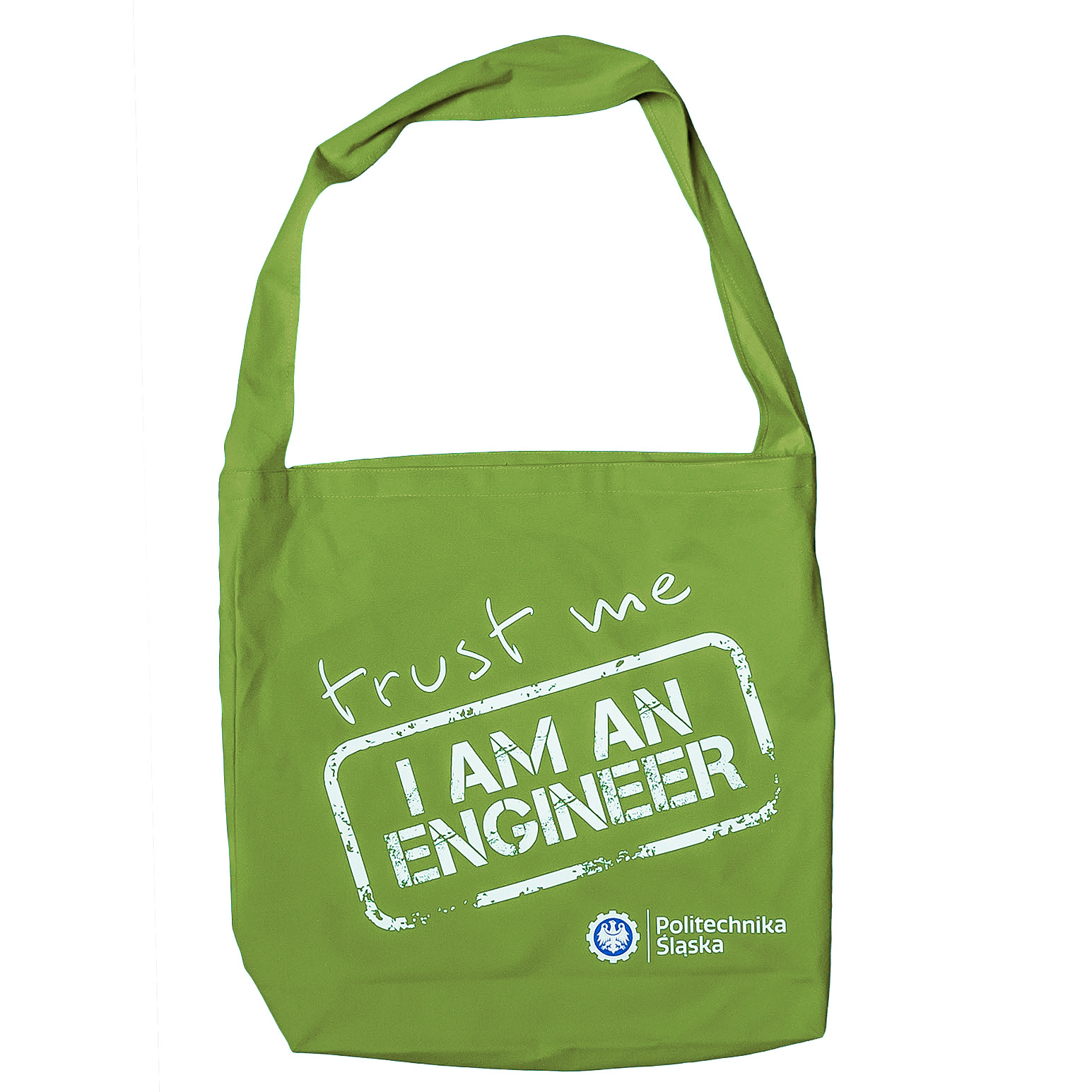 Wyjątkowa torba z kolorowego drelichu o gramaturze 270 g, ozdobiona nadrukiem „Trust me, I’m an engineer” – idealna na uczelnię, zakupy czy codzienne wyjścia.
